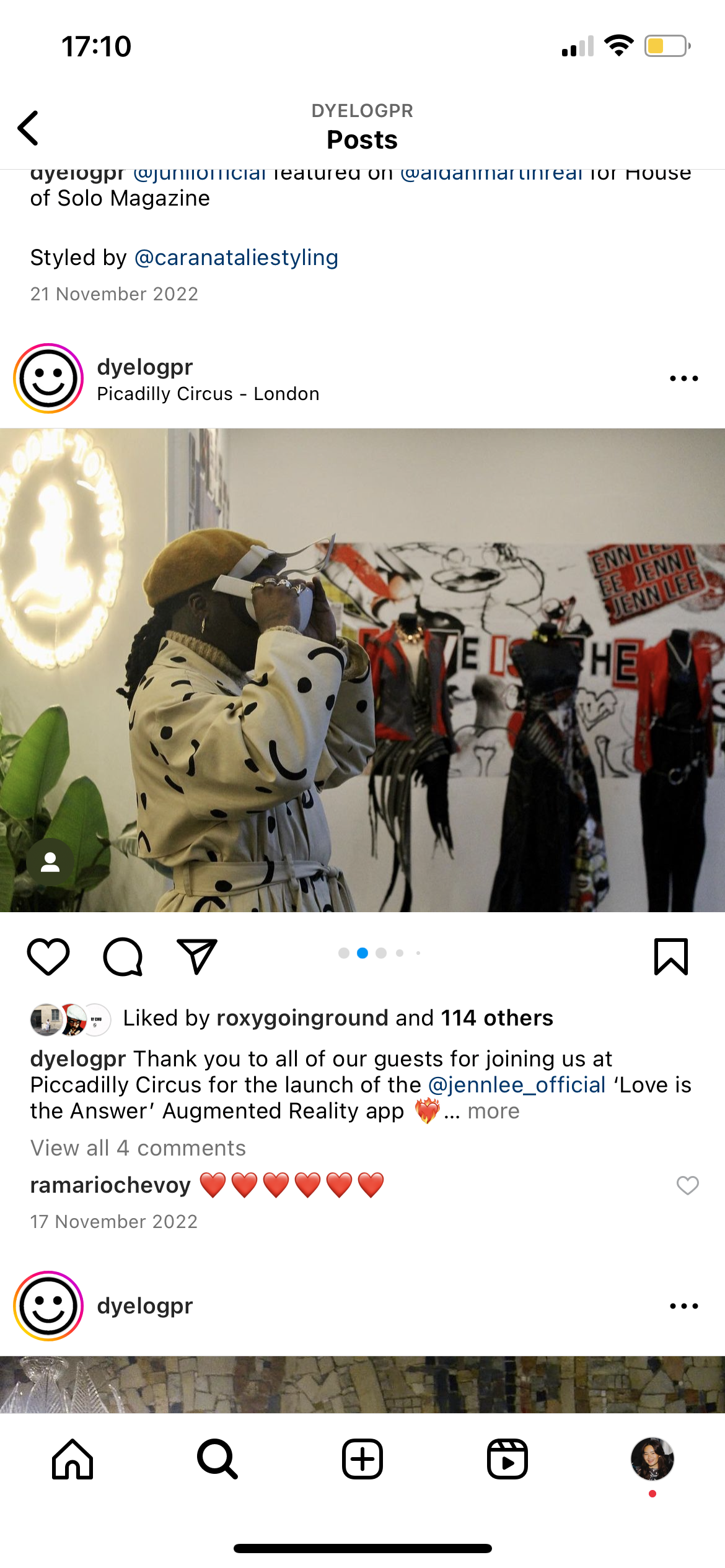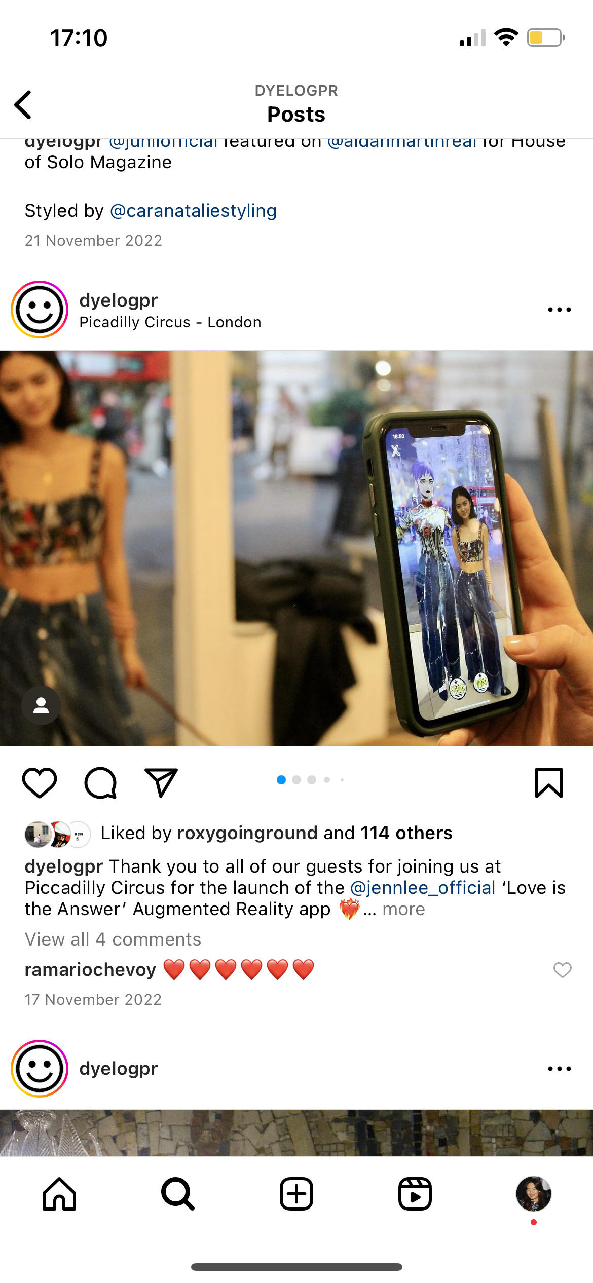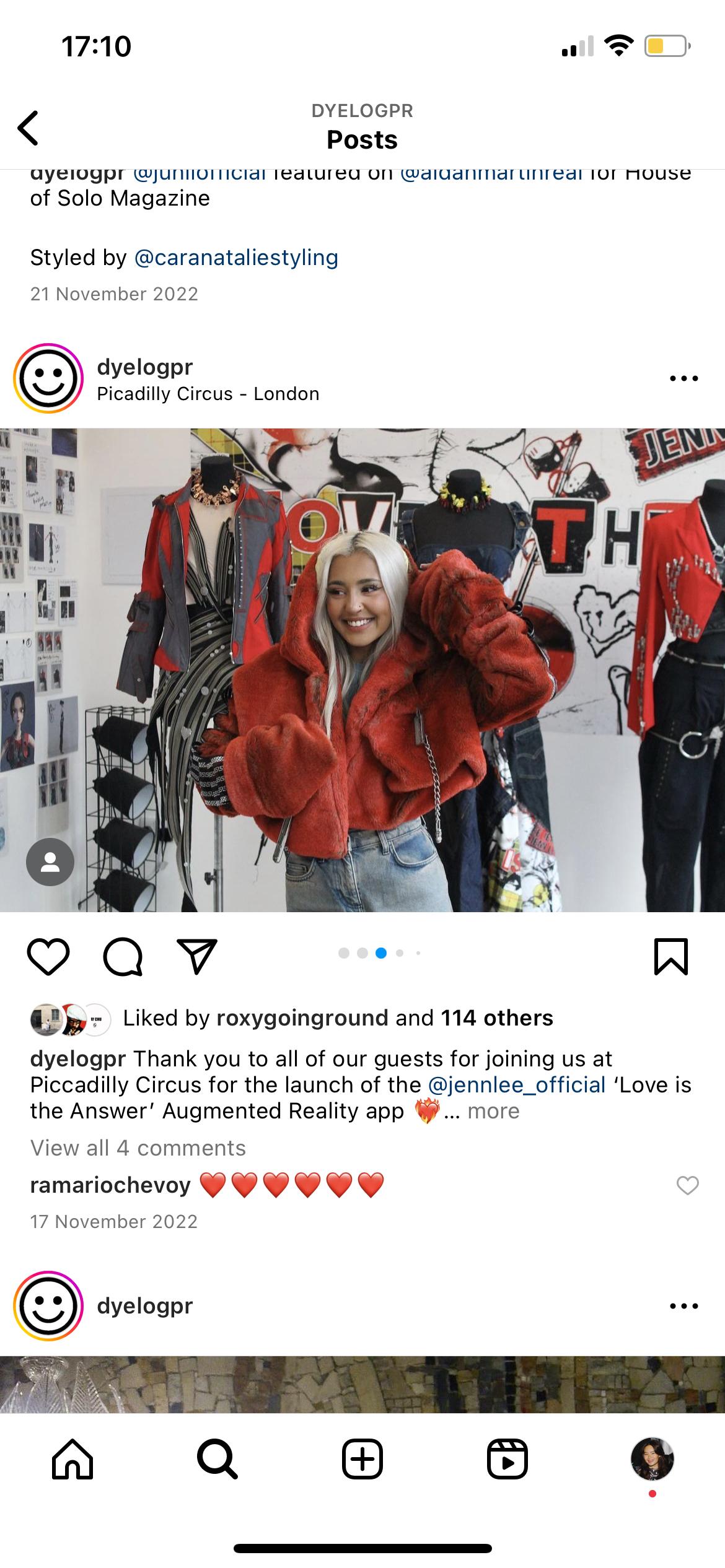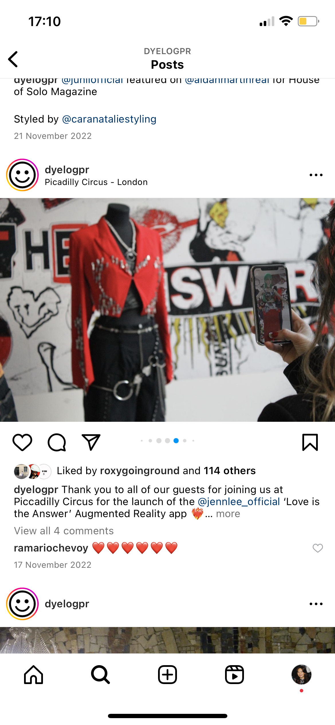 To launch the new ‘Love is the Answer’ Augmented Reality app for the fashion brand, JENN LEE represented by Dyelog, hosted a pop up event at Piccadilly Circus with special guests.